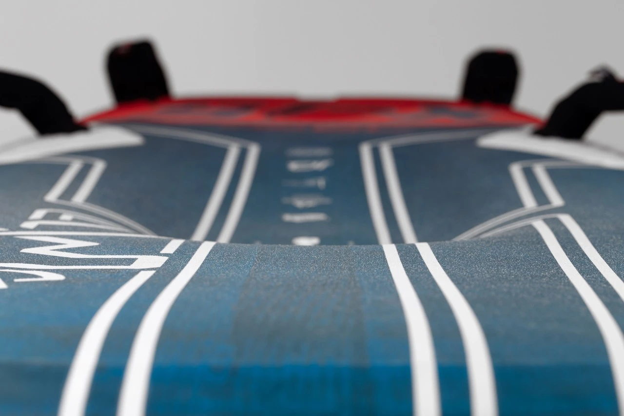 Das Konzept der seitlichen Cutaways wurde auf die Spitze getrieben, um zusätzliche Geschwindigkeit zu entwickeln und früh auf das Foil zu kommen; man kann schon abheben, bevor man die eigentliche Gleitgeschwindigkeit erreicht. Das Board ist von der Nose bis zum Tail wie ein Tropfen geformt, was den Luftwiderstand reduziert und die aerodynamische Effizienz erhöht. Infolgedessen ist das Board sehr gleitfähig und stabil in der Luft.