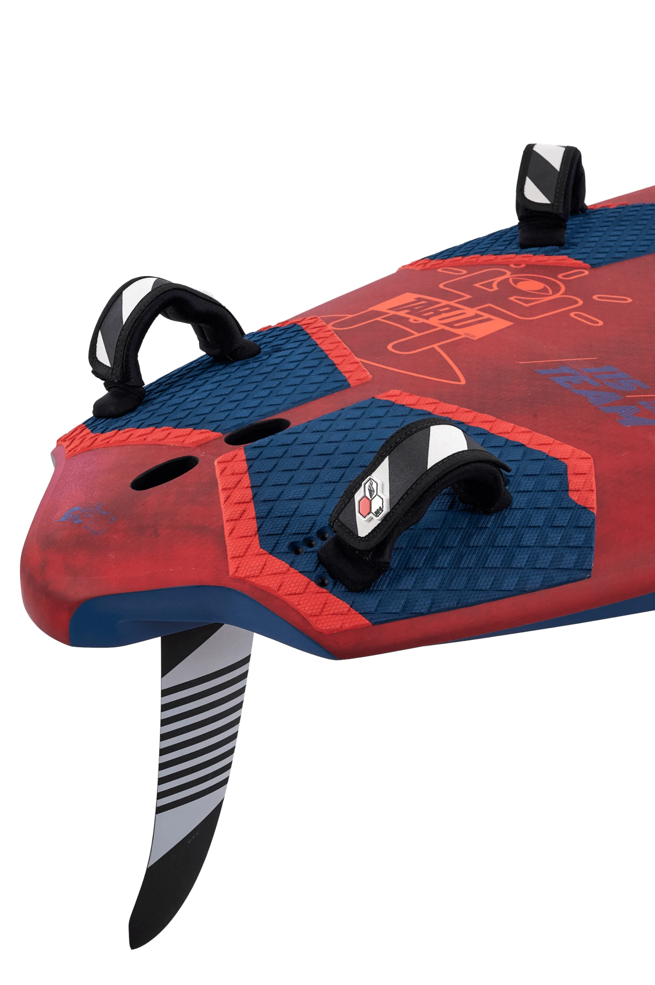 Die breite Outline im Heck bietet herausragenden Lift, der für schnelles Abheben beim Einsatz mit Foil erforderlich ist, und verbessert die Kontrolle beim Windsurfen mit Finne. Die durchdacht gestalteten großen Cut-Outs im Heck reduzieren die wasserbenetzte Fläche erheblich, was zu bemerkenswerten Höchstgeschwindigkeiten mit Finne und schnelleren Take-Offs beim Foilen führt.